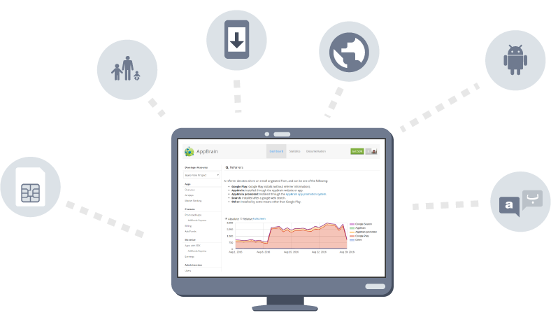 Integrate the AppBrain SDK and you'll get free access to the built-in user analytics. The AppBrain SDK gives you insights into your user properties, install referrers, user retention rates and more. It allows you to measure user engagement by tracking custom post-install events in your app. You can also use these post-install events in your install attribution statistics to measure the user quality of your acquisition channels and determine which channels works the best for your app.
